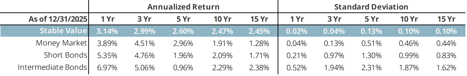 Stable value provides the following unique combination of benefits: